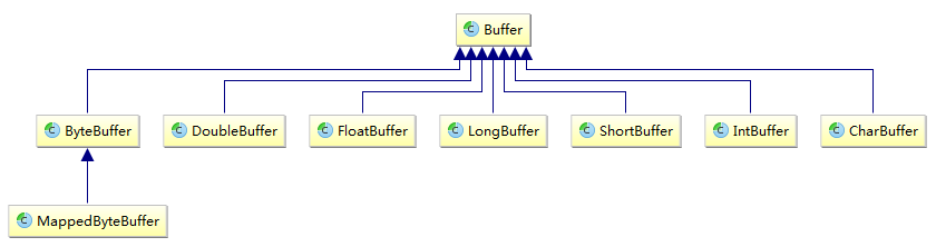 上图是 Buffer 的类继承结构,顶部Buffer中定义了所有缓冲区需要实现的方法,下面列出这些方法的签名