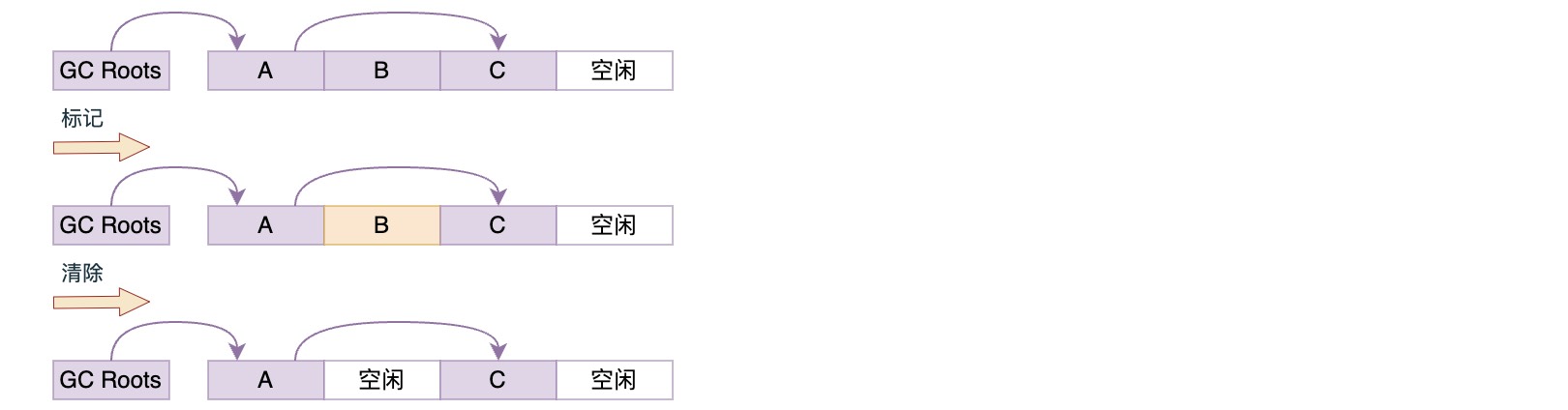 之所以说这是最基础的收集算法,是因为后续的收集算法都是基于这种思路并对其不足进行改进而得到的。它的不足有两个: