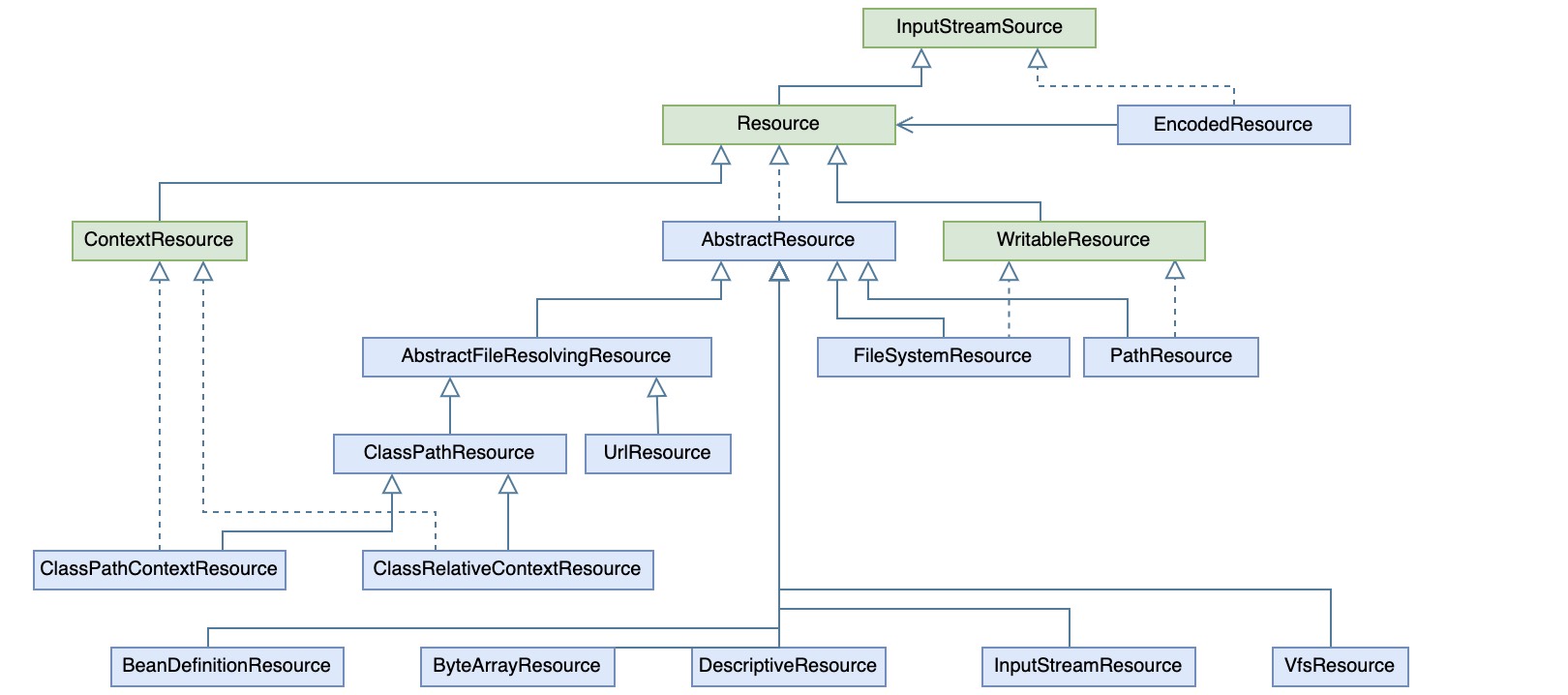 private Class<?> clazz; // ... ... public InputStream getInputStream()throws IOException { InputStream is; if (this.clazz != null) { is = this.clazz.getResourceAsStream(this.path); }elseif (this.classLoader != null) { is = this.classLoader.getResourceAsStream(this.path); }else { is = ClassLoader.getSystemResourceAsStream(this.path); }if (is == null) { thrownewFileNotFoundException(getDescription() + " cannot be opened because it does not exist"); } return is; } }