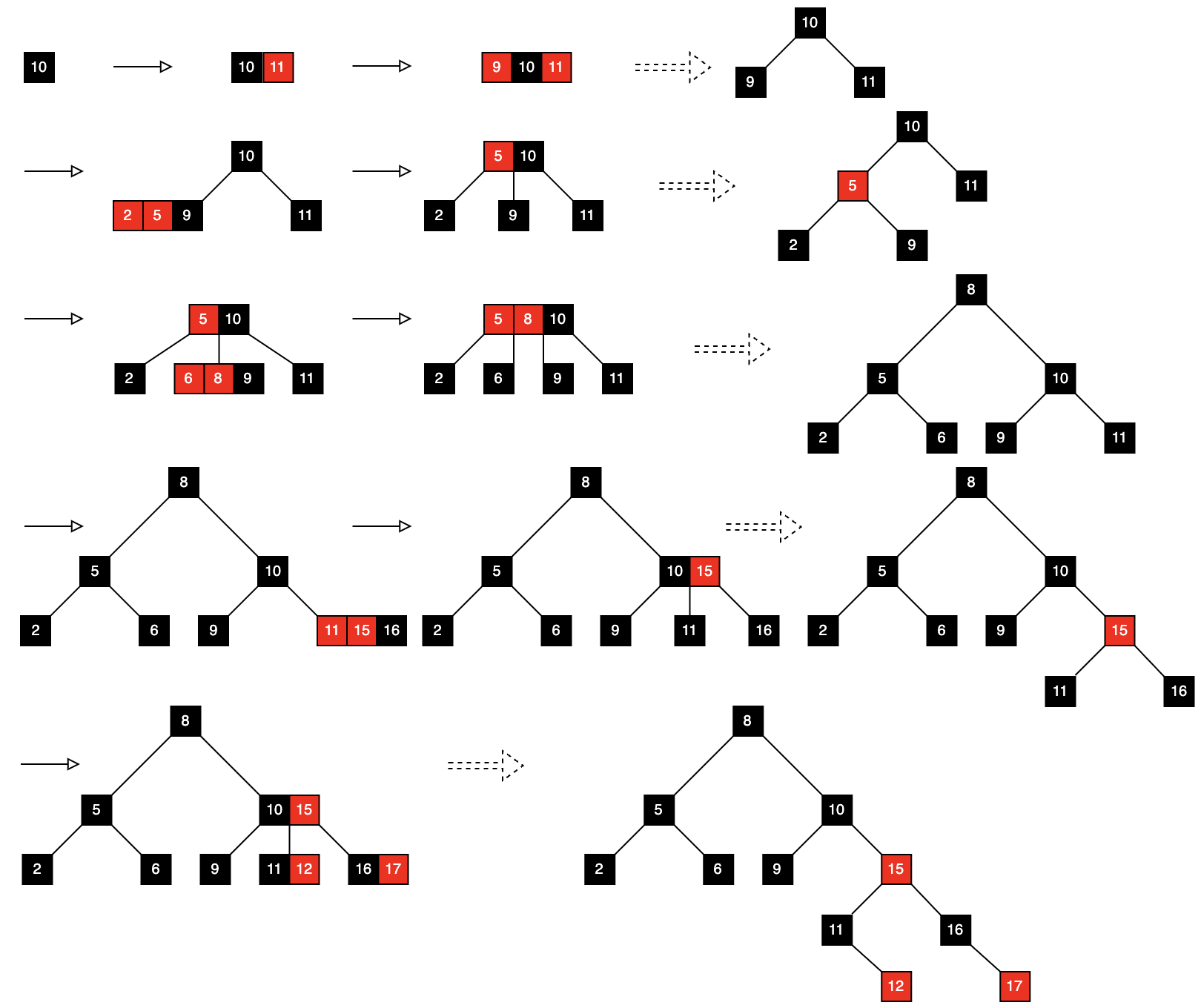 依次插入10,11,9,5,2,6,8,15,16,12,17