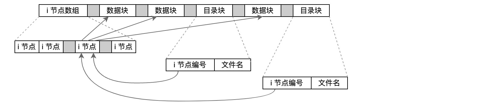 i节点包含了文件有关的所有信息,如文件类型、访问权限位、文件长度、指向文件数据块的指针等。stat结构中的大多数信息都取自i节点,只有两项重要数据存放在目录项中:文件名和i节点编号。只是一个目录项不能指向另一个文件系统的i节点,在不更换文件系统的情况下进行mv文件重命名时,实际并未发生文件移到,只需构造一个指向先有i节点的新目录项,并删除旧的目录项。