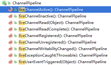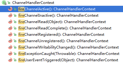 然后在ChannelPipeline和ChannelHandlerContext中,也可以看到与之对应的9个以fire开头的方法