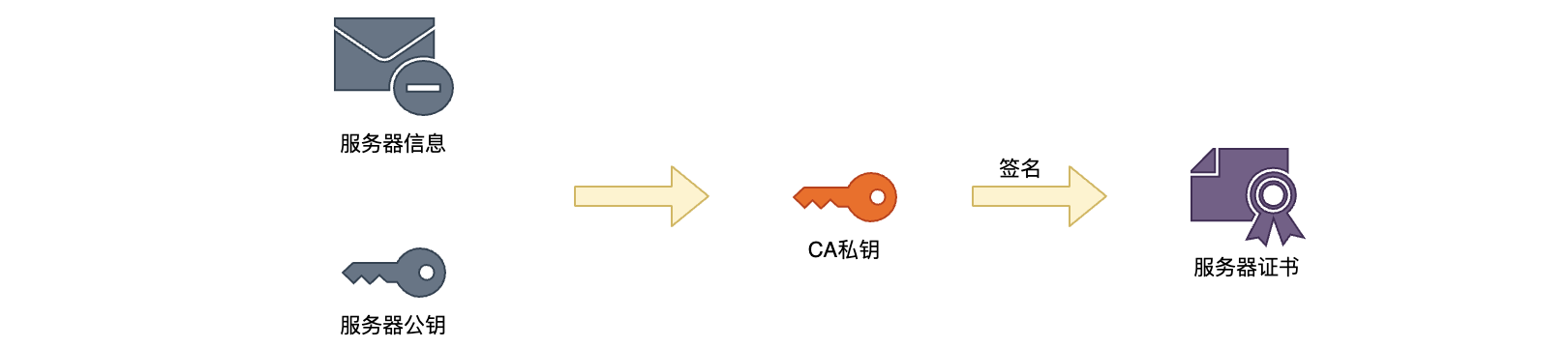 签名证书 服务器证书中的内容包括服务器公钥、服务器身份信息、和CA的数字签名 (公钥+身份信息进行哈希后,用权威数字证书机构CA私钥进行加密的值);
