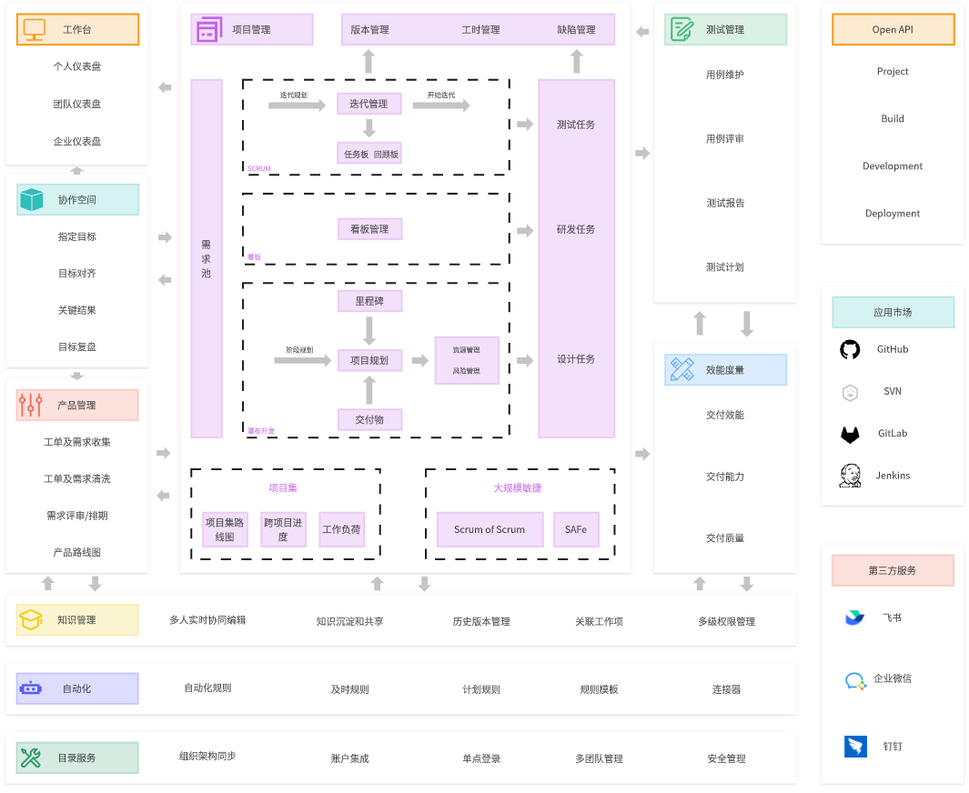 项目架构覆盖所有架构:项目需要拆解业务规则设计、产品原型绘制、应用接口开发、数据流转配置、技术扩容部署等全环节任务。