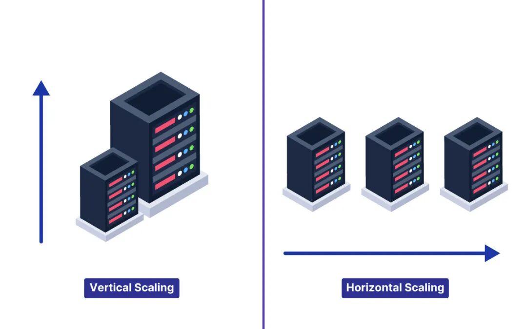 垂直方向的制作更容易,但会受到硬件限制,而且成本很高。横向扩展更难,因为需要负载均衡、无状态服务和共享存储。