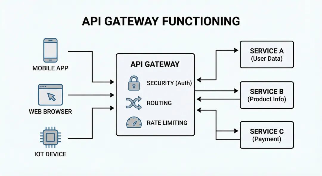 API网关是一种特殊的反向代理,它充当微服务系统中所有API调用的单一入口点。它负责将请求路由到正确的服务、速率限制、身份验证、日志记录,有时还负责响应整形。